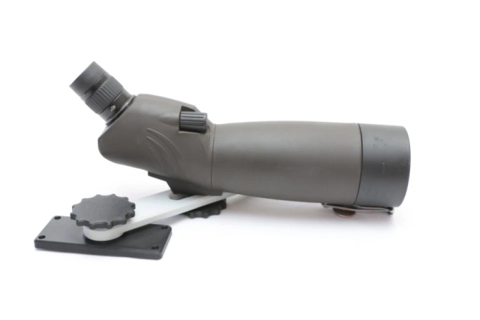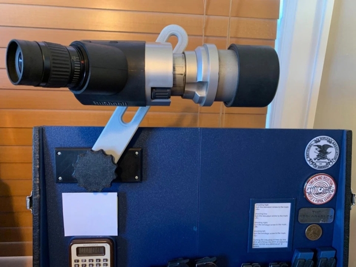 Gun Box Spotting Scope Mount fashioned after the Gil Hebbard mount. To be mounted on GunHo, Pachmayr style wood boxes or similar.